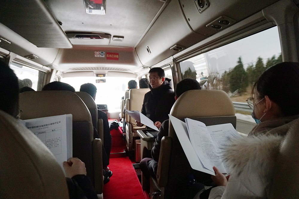 在前往觀摩現(xiàn)場途中,集團綜合部副部長安少帥向市委組織部、市財政局和集團領(lǐng)導(dǎo)詳細(xì)介紹本次觀摩活動的行程安排。