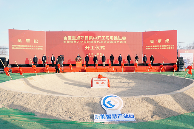 開局就是決戰(zhàn),起步就是沖刺。1月16日上午,煙臺市舉行2022年重點項目集中開工活動,在蓬萊區(qū)分會場,新能智慧產(chǎn)業(yè)園智慧綠色高端家具板材一期項目奠基開工。蓬萊區(qū)委書記林鈺濤、區(qū)長王長港及區(qū)委區(qū)政府其他領(lǐng)導(dǎo)班子成員出席活動慶典,煙臺財金集團總經(jīng)理李輝、煙臺新能智慧產(chǎn)業(yè)園董事長吳軍紀、總經(jīng)理高春光及產(chǎn)業(yè)園全體員工共同參加慶典并見證項目奠基開工。