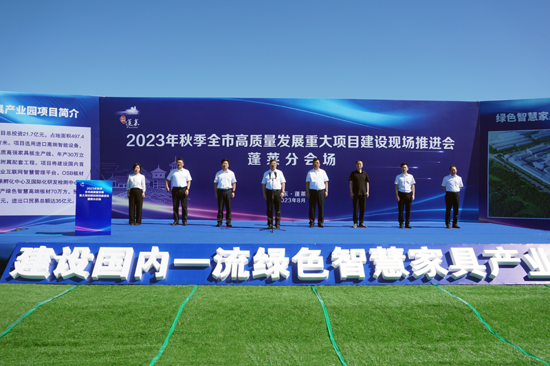 以高質量項目建設推動高質量發(fā)展。8月23日,煙臺舉行全市高質量發(fā)展重大項目建設現(xiàn)場推進會。在蓬萊分會場,智慧綠色高端家具板材二期項目舉行開工儀式。蓬萊區(qū)委書記林鈺濤、區(qū)長王長港及區(qū)委區(qū)政府領導班子其他成員出席推進會,煙臺財金集團董事長田序潤及新能智慧產業(yè)園全體員工共同參加活動。