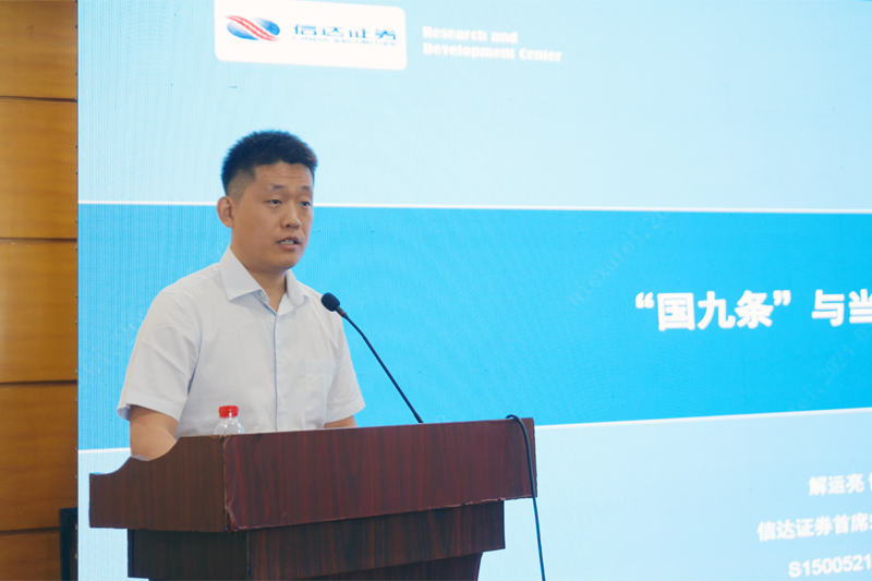 會議由煙臺財金集團黨委委員、副總經(jīng)理修兆強主持。會上,中國信達(dá)山東分公司業(yè)務(wù)四處處長楊健、信達(dá)證券宏觀首席分析師解運亮先后分別以《不良資產(chǎn)視角下的上市公司并購重組》和《“國九條”與當(dāng)前經(jīng)濟形勢》為題進(jìn)行主題分享。