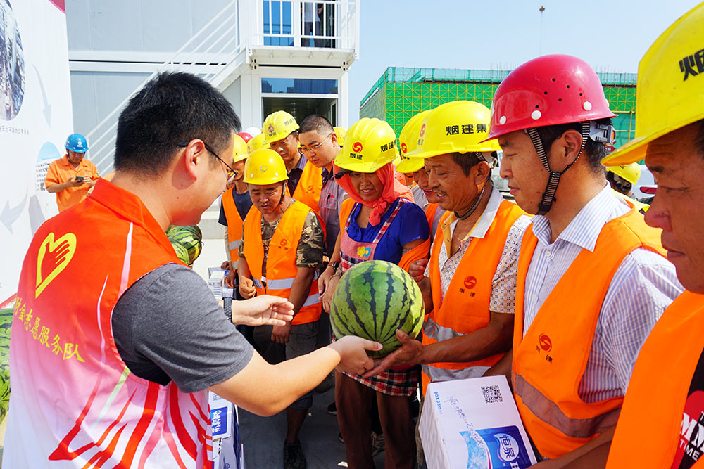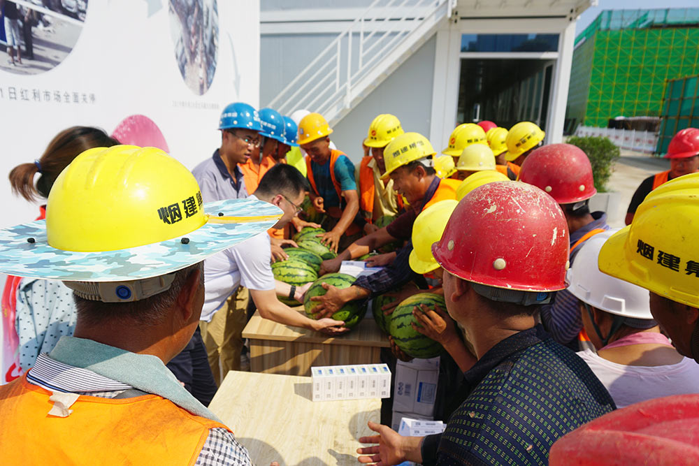 眼下,雖已立秋,但持續(xù)的高溫天氣,讓建設(shè)工地的工人們?nèi)皂斨籽琢胰眨瑩]汗如雨,迎戰(zhàn)“烤”驗(yàn)。為促進(jìn)一線工人身心健康,實(shí)現(xiàn)工地安全生產(chǎn),8月18日上午,財(cái)政監(jiān)管市屬國有企業(yè)“紅色先鋒”黨建聯(lián)盟一行20名黨員代表,來到芝罘灣廣場建設(shè)工地,組織開展了“進(jìn)工地送清涼”活動(dòng),為工人們送上西瓜、礦泉水、藥品等降暑物品,向堅(jiān)守在高溫下的一線工人送去清涼和關(guān)懷。