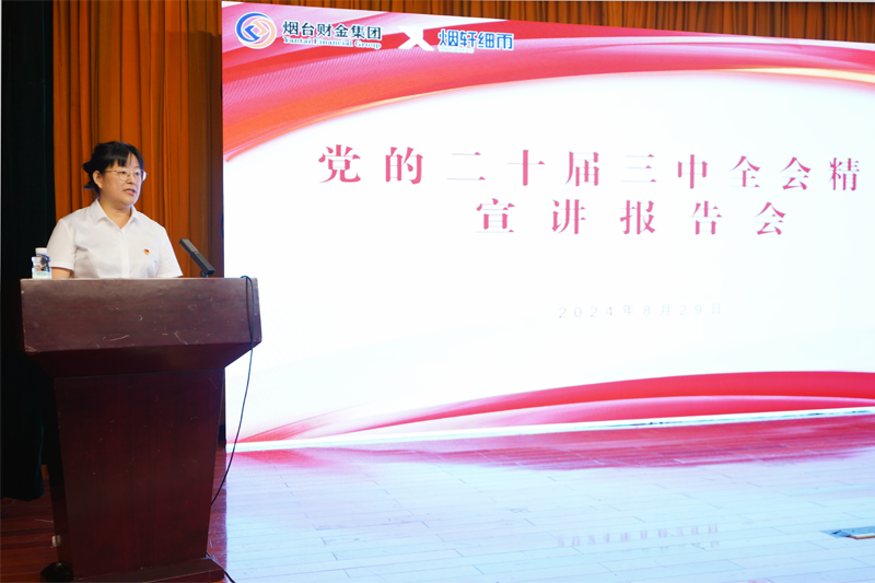 8月29日,煙臺(tái)財(cái)金集團(tuán)召開學(xué)習(xí)貫徹黨的二十屆三中全會(huì)精神宣講報(bào)告會(huì)。濱州醫(yī)學(xué)院馬克思主義學(xué)院形勢與政策教研室主任曹錫山作專題宣講,集團(tuán)黨委班子成員、外部董事、高級(jí)總監(jiān)及各部門、權(quán)屬企業(yè)干部職工等近150余人參會(huì)。